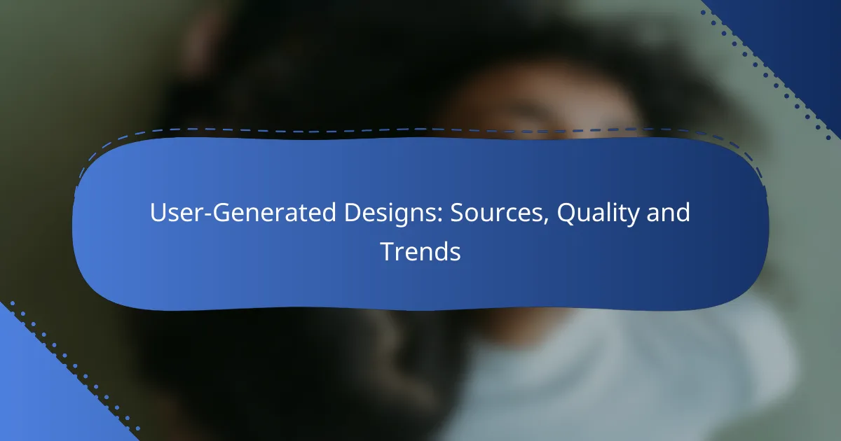User-generated designs have become a vital part of the creative landscape, with social media platforms, design marketplaces, and online communities serving as key sources for innovative ideas. Evaluating the quality of these designs involves considering user reviews and professional endorsements, which highlight their effectiveness and appeal. Current trends showcase a focus on minimalist aesthetics, sustainability, and technology integration, reflecting a growing demand for personalized and interactive experiences.